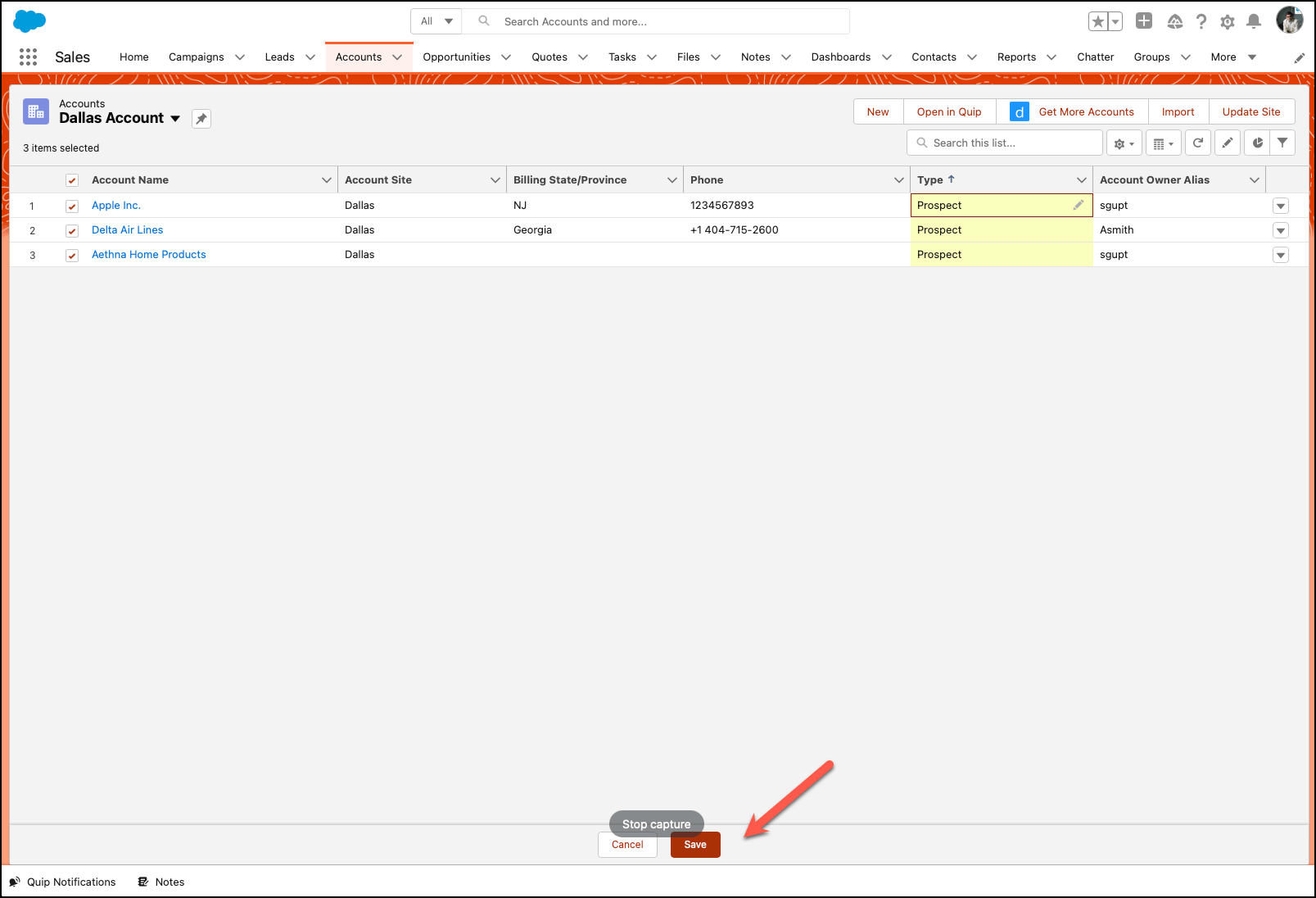 Note:- Some standard fields don’t support inline editing. For example, Case Status, Opportunity Stage, Opportunity Amount, Opportunity Quantity and Lead Status, and most Task and Event fields can only be edited from a record’s edit page. If your organization uses record types, inline editing with lists is only available when all of the records in the list are of the same record type.