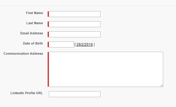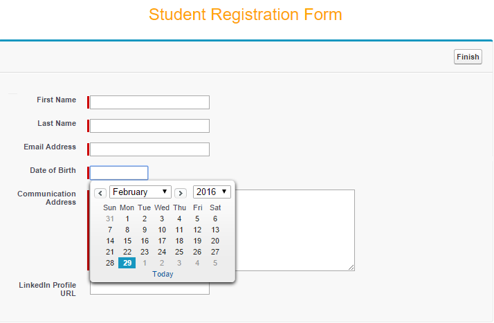 Finally, it will look like the preceding screenshot, after hiding the date picker from Date of birth field.