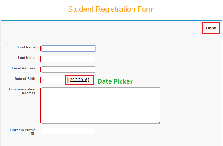 Student Registration Form – Embedded into the VF Page