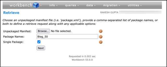 - The next step is to retrieve the package or change set using the workbench.