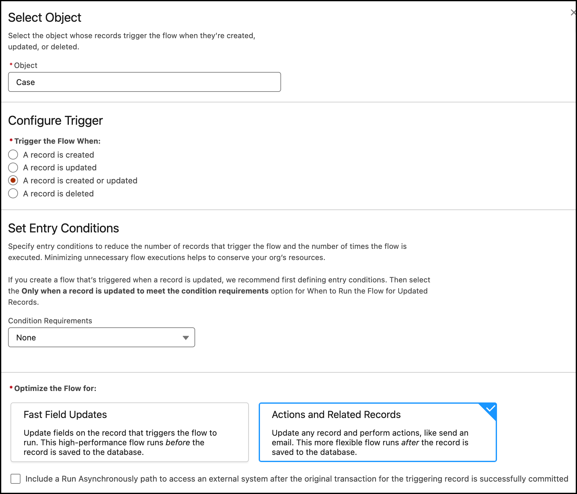 - When to Execute Outcome: Only if the record that triggered the flow to run is updated to meet the condition requirements